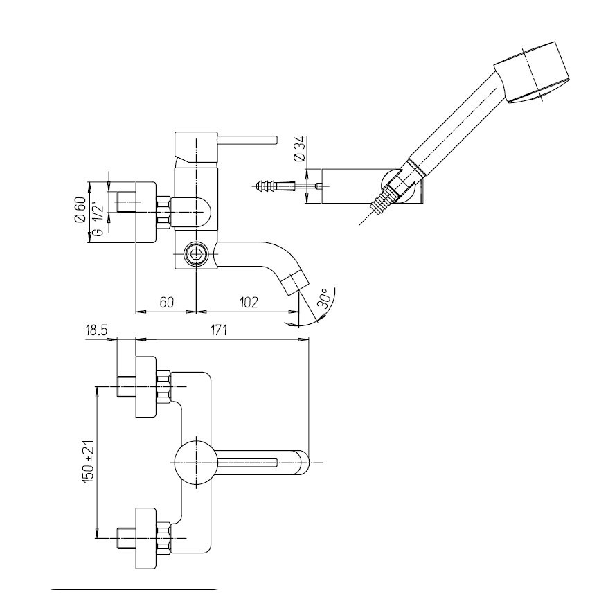 Смеситель Paini Cox 78CR105 для ванны и душа