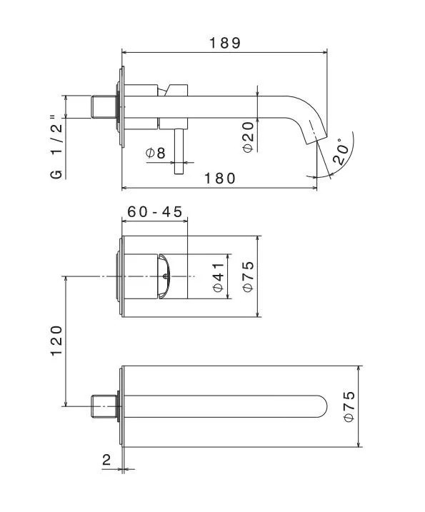 69628EXKM.59.067 Смеситель для раковины ETERNA однорычажный настенный, без донного клапана, браширов