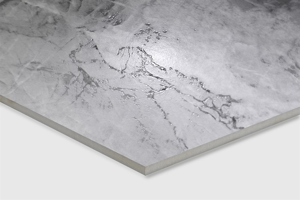 Уникальные прожилки, имитирующие натуральный камень, добавляют индивидуальность, а технология карвинга создает эффект серебристого перелива в прожилках. Этот эффект становится особенно заметным при изменении освещения, подчеркивая детали и текстуру поверхности. Каждое изменение угла освещения раскрывает новые грани и оттенки, привнося в помещение атмосферу уюта и теплоты.