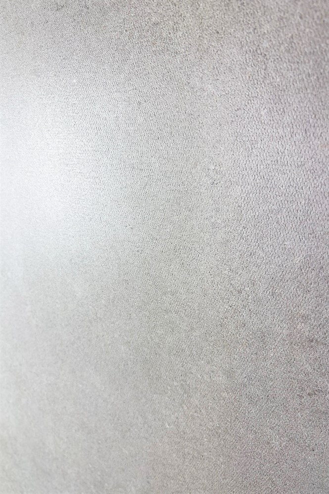 Поверхность обладает мягкой фактурой, напоминающей природные минеральные образования. Тонкая игра светотени на рельефной поверхности создает эффект глубины и натуральности, при этом сохраняя визуальную легкость и воздушность. Теплый серый оттенок с легким бежевым подтоном придает пространству особое тепло и уют.