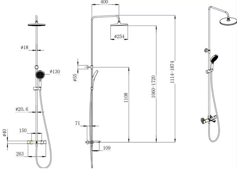 FO.301.KM.CR Душевая колонна FONTE на 3 потока с фиксированным изливом и термостатическим смесителем, хром