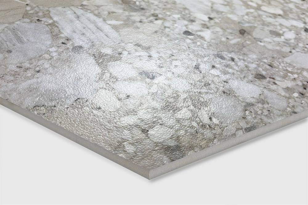 GLIATO TERRAZZO SOLIDO – это керамогранит, который мастерски передает очарование традиционного венецианского терраццо, сохраняя при этом все преимущества современного материала. Его поверхность, украшенная изящными каменными вкраплениями в мягкой серой гамме, словно создана вручную, наполняя интерьер духом старинных итальянских вилл.