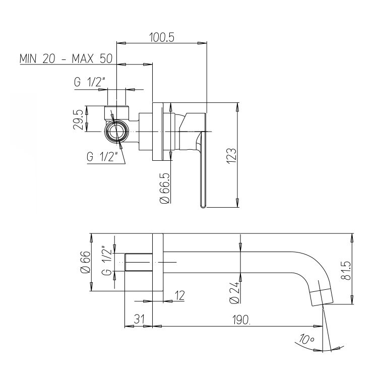 Однорычажный смеситель длинна излива 19 см