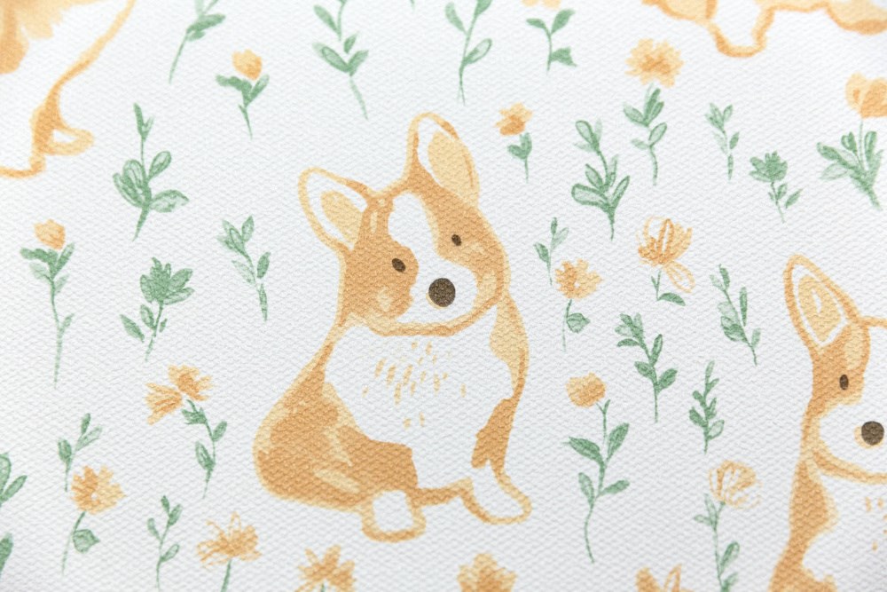 KM7801 Обои виниловые на флизелиновой основе Уик-энд мотив, жёлто-зелёный корги KЕРАМА МАРАЦЦИ