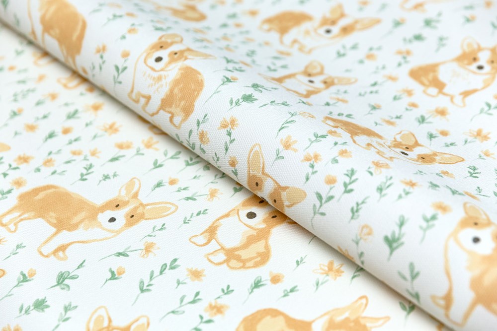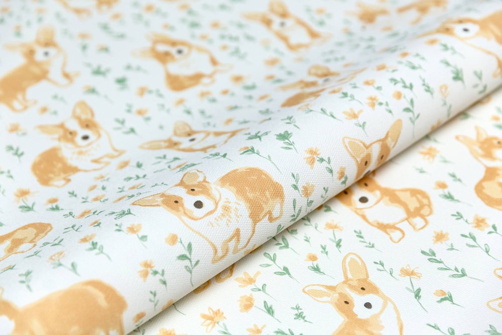 KM7801 Обои виниловые на флизелиновой основе Уик-энд мотив, жёлто-зелёный корги KЕРАМА МАРАЦЦИ