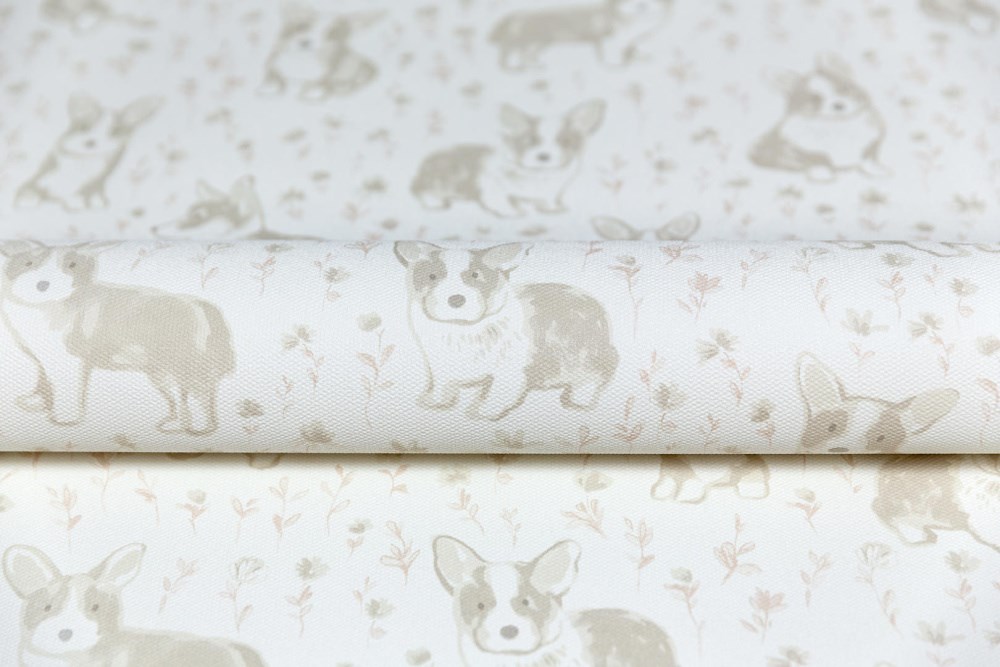 KM7802 Обои виниловые на флизелиновой основе Уик-энд мотив, бежевый корги KЕРАМА МАРАЦЦИ