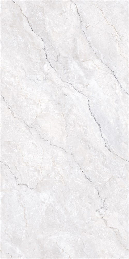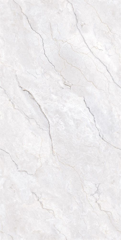Каждая плита коллекции представляет собой гармоничное сочетание холодного белого фона с деликатными переливающимися акцентами. Технология металлизации придает прожилкам особое сияние — при изменении освещения они мягко мерцают, создавая живую, дышащую поверхность. Этот эффект превращает обычное покрытие в художественный элемент интерьера, который меняет характер в зависимости от времени суток и угла падения света.