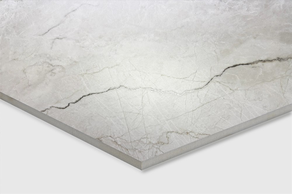 LUMIERE WHITE — воплощение утонченной мраморной эстетики в современном керамограните. Этот материал сочетает в себе благородную матовую поверхность с изысканной игрой светоотражающих прожилок, создавая эффект глубины и динамики в интерьере.