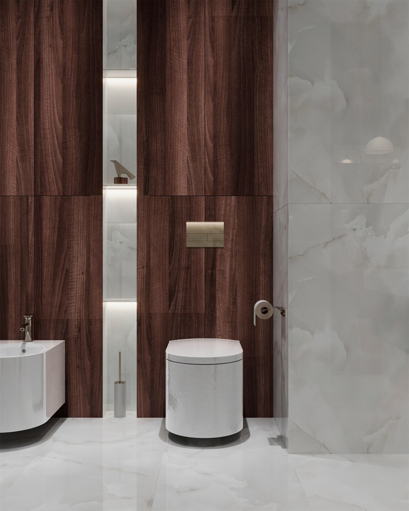 Гладкая глянцевая поверхность ONYX WHITE CLOUD не только красиво отражает свет, но и создает атмосферу простора и уюта. Использование этого керамогранита в интерьере помогает визуально расширить пространство и добавить глубину.