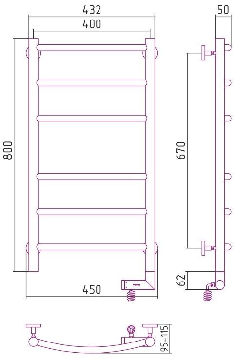 Состав поставкиПолотенцесушитель - 1 шт Кронштейн телескопический - 4 шт Ключ №2,5 - 1 шт Инструкция - 1 шт.