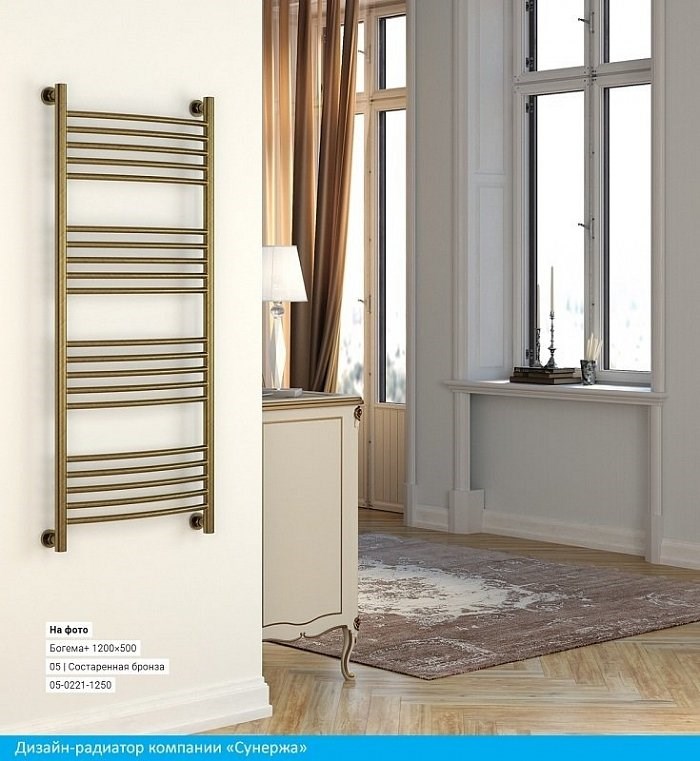 Полотенцесушитель водяной Сунержа Богема+ 120 x 40 см, 00-0221-1240, выгнутые перемычки, хром