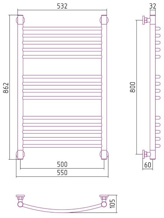 Состав поставкиПолотенцесушитель - 1 шт Кронштейн телескопический - 2 шт Кран Маевского - 1 шт Уголок проходной - 2 шт Угол глухой - 2 шт Штуцер для коллектора - 4 шт Прокладка фторопластовая - 4 шт Силиконовая прокладка - 2 шт Комплект заглушек - 1 шт Отражатель - 2 шт