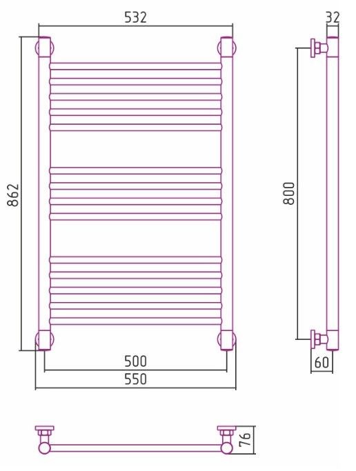 Состав поставкиПолотенцесушитель - 1 шт Кронштейн телескопический - 2 шт Кран Маевского - 1 шт Уголок проходной - 2 шт Угол глухой - 2 шт Штуцер для коллектора - 4 шт Прокладка фторопластовая - 4 шт Силиконовая прокладка - 2 шт Комплект заглушек - 1 шт Отражатель - 2 шт