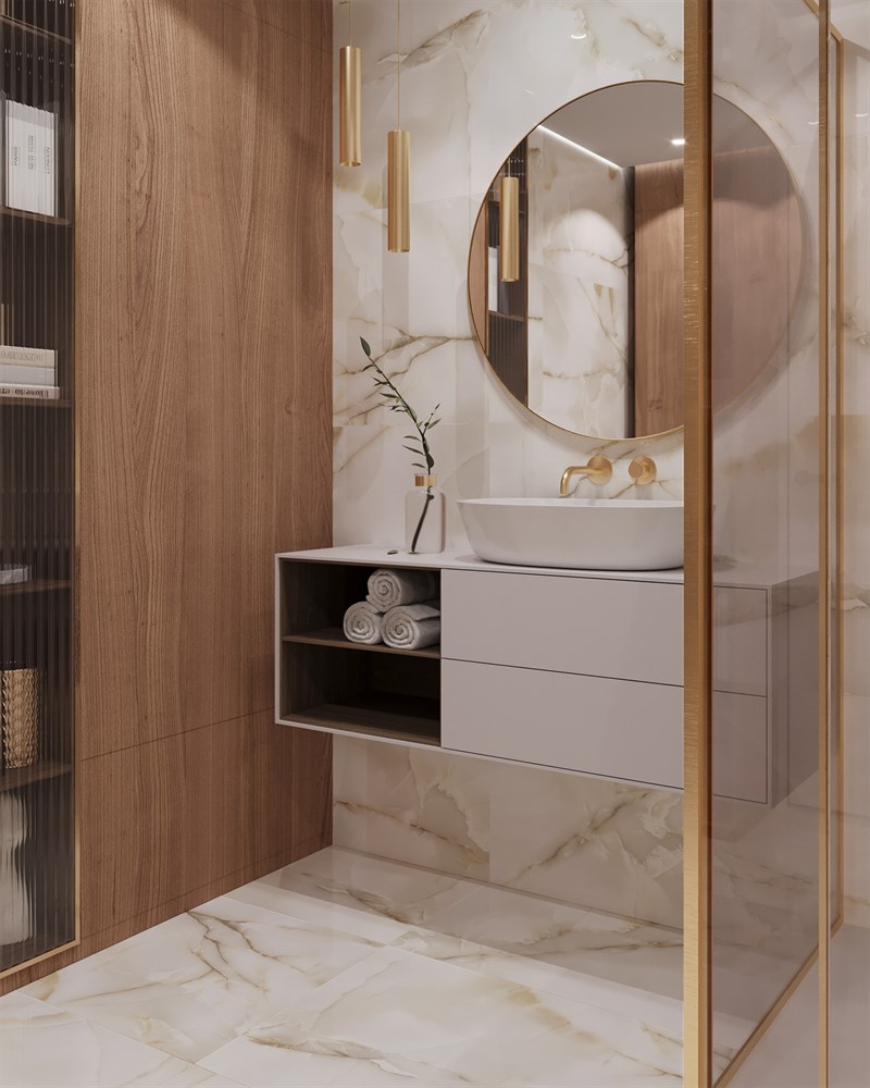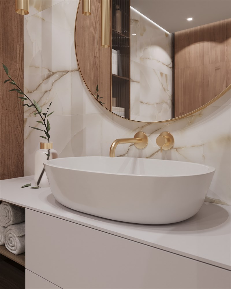 Природные трещинки золотистого оттенка придают материалу уникальность и делают его идеальным выбором для различных стилей интерьеров — от классического до современного. Тёплый оттенок прекрасно гармонирует с другими элементами декора, создавая уютную атмосферу.