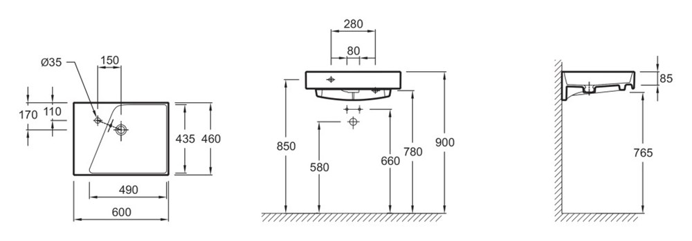 Раковина Jacob Delafon Rythmik EXQ112-Z 60 см