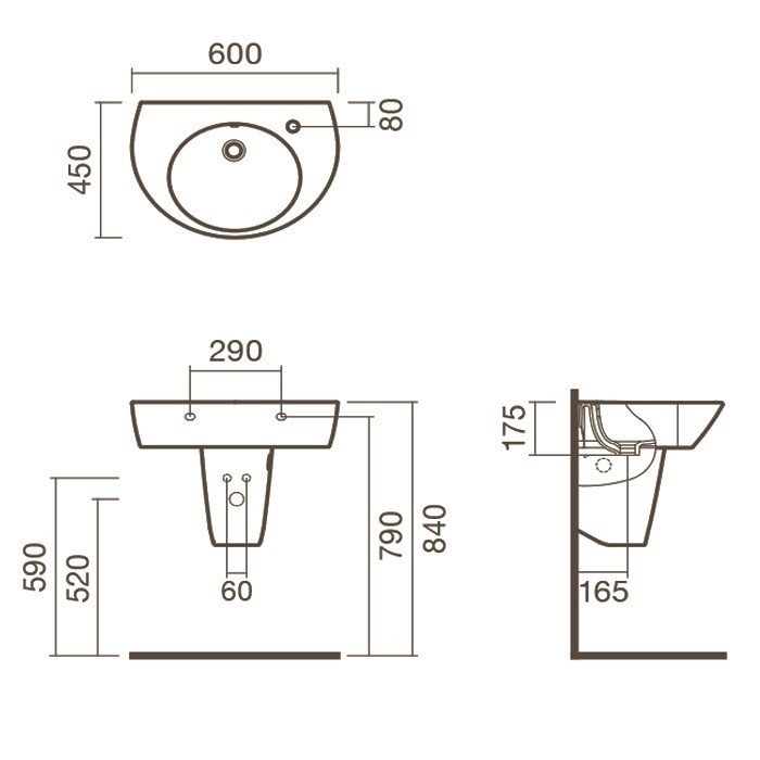 Раковина подвесная 60 Sanitana POP с полупьедесталом