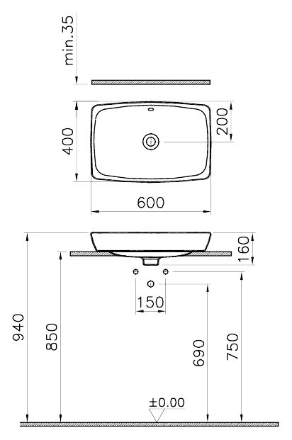 Раковина VitrA Metropole 5668B003-0012 60 см