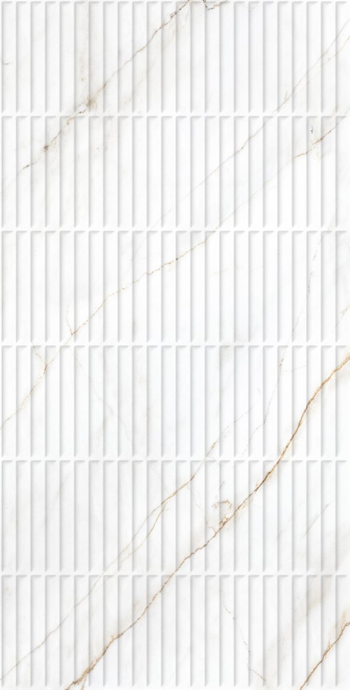 SELVA GOLD DECOR – керамогранит, переосмысливающий классическую эстетику мрамора через призму современного дизайна. Коллекция представляет собой искусную стилизацию реечной кладки, где благородная матовая белизна фона контрастирует с изысканными золотыми прожилками, выполненными по технологии карвинга.