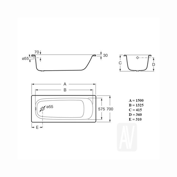Стальная ванна Roca Contesa 150 см