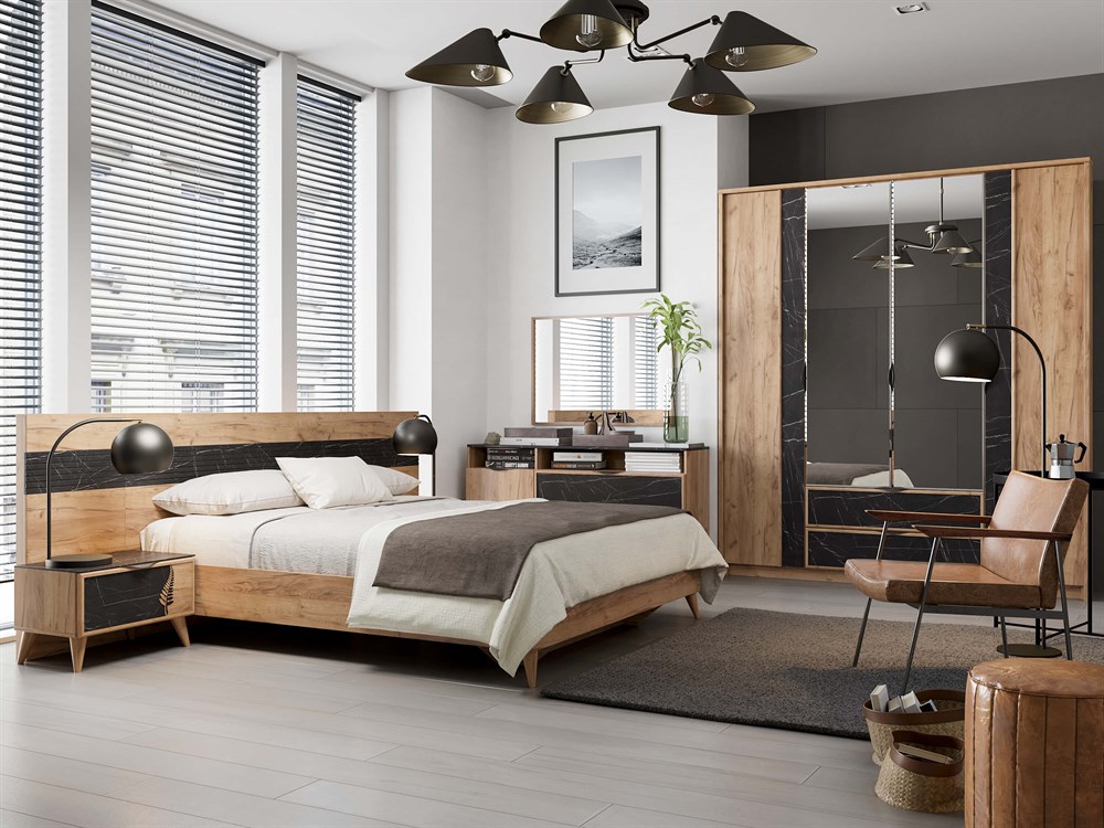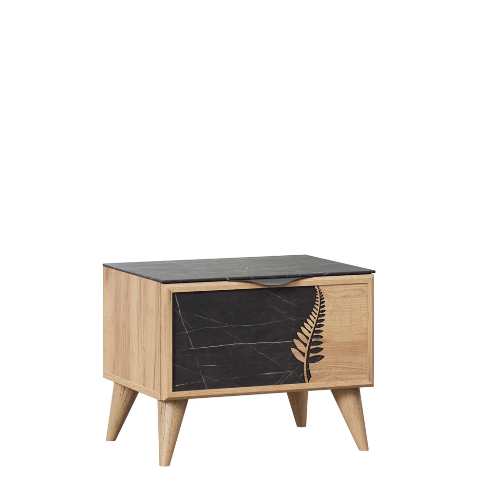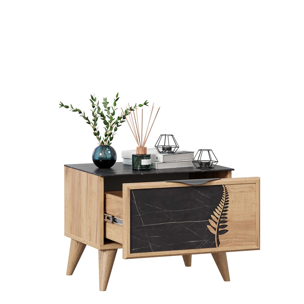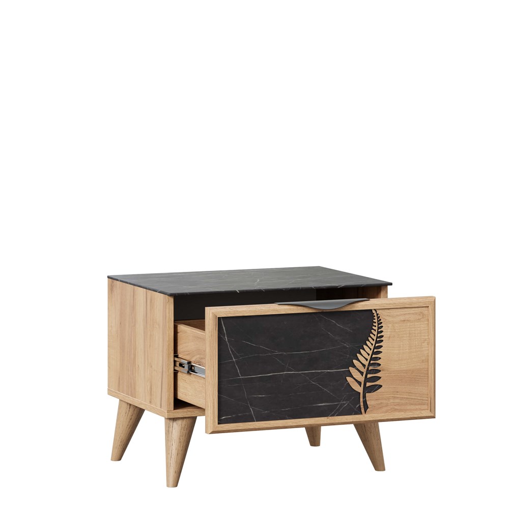 Тумба прикроватная левая Шелли (Дуб золотой/Камень Пьетра чёрный)