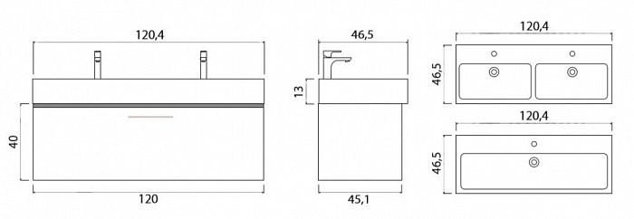 Тумба с раковиной подвесная Creto Milano 120 Truffle две чаши